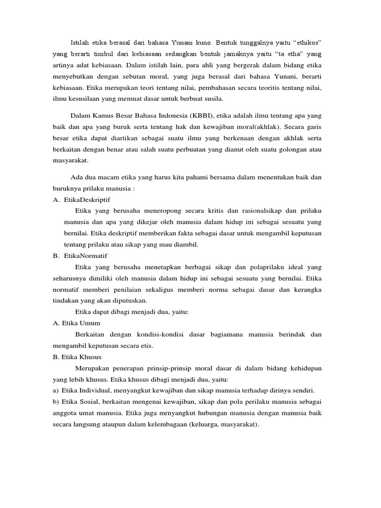 Istilah Etika Berasal Dari Bahasa Yunani Kuno , Sumber : www.scribd.com